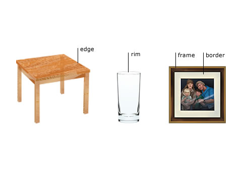 bor·der [border borders bordered bordering] noun, verb BrE [ˈbɔːdə(r)] NAmE [ˈbɔːrdər] noun  1. the line that divides two countries or areas; the land near this line •a national park on the border between Kenya and Tanzania •Denmark's border with Germany •in the US, near the Canadian border •Nevada's northern border •to cross the border •to flee across/over the border •border guards/controls •a border dispute/incident •a border town/state • (figurative) It is difficult to define the border between love and friendship. 2. a strip around the edge of sth such as a picture or a piece of cloth •a pillowcase with a lace border 3. (in a garden)a strip of soil which is planted with flowers, along the edge of the grass •herbaceous borders Word Origin: late Middle English: from Old French bordeure; ultimately of Germanic origin and related to ↑board. Thesaurus: border noun C •Thousands try to cross the border every day. boundary • • line • |BrE frontier • across/along/on/over a/the border/boundary/line/frontier inside/within/beyond/outside the borders/boundaries/frontiers the border/boundary/line/frontier between one place and another the border/boundary/frontier with a place Which word? The border is the point where you cross from one country into another. In British English you can use frontier, although this often suggests wildness or danger. In Britain a boundary divides one county from another; in the US a line divides counties and states. A boundary can also be a physical line between two places, marked by a fence or wall. Collocations: International relations Trade facilitate/regulate trade (with other countries) form/join a trading bloc live in/compete in a global/the world economy support/promote free trade adopt/call for/oppose protectionist measures erect/impose/reduce/remove trade barriers impose/lift/raise/eliminate import tariffs (on sth) have/run a huge/large/growing trade surplus/deficit embrace/resist/drive globalization Politics and law conduct/handle/talk about/discuss foreign policy pursue an aggressive/a hawkish foreign policy require/use/conduct diplomacy establish/break off/sever/restore diplomatic relations foster/promote/strengthen regional cooperation facilitate/achieve economic/political integration exercise/defend/protect/transfer/restore/regain national/state/full/limited sovereignty consolidate/extend/lose/retain your power (in the region) hold/maintain/change/alter/shift/be a shift in the balance of power (in the region) cause/create/open/expose/heal/repair a deep/growing/major/serious rift between X and Y Meetings and agreements have/hold/host/attend an international conference/an economic forum/a G20 summit launch a new round of global/multilateral/world trade negotiations send/head/lead/meet a high-level/an official/a trade delegation begin/start/continue/resume peace talks be committed to/be opposed to/disrupt/undermine/derail/sabotage the peace process negotiate/achieve a lasting political settlement broker/sign a peace deal/agreement/treaty Conflict be/constitute/pose a threat to global security compromise/endanger/protect national security justify/be in favour of/ (especially US) be in favor of/be against military intervention threaten/authorize/launch/take/support/oppose unilateral/pre-emptive military action impose/enforce/lift/end economic sanctions/an arms embargo/a naval blockade close/protect/secure/patrol the border lead/be involved in a peacekeeping operation Aid negotiate/announce a $15 billion aid package/an economic stimulus package send/provide/request/cut off military aid bring/provide emergency/humanitarian relief deliver/distribute medical supplies/(BrE) food parcels fund/run a foreign/a local/an international NGO reduce/eradicate child/global/world poverty Synonyms: border boundary • frontier These are all words for a line that marks the edge of sth and separates it from other areas or things. border • the line that separates two countries or areas; the land near this line: ▪ a national park on the border between Kenya and Tanzania boundary • a line that marks the edges of an area of land and separates it from other areas: ▪ The fence marked the boundary between my property and hers. frontier • (BrE) the line that separates two countries or areas; the land near this line: ▪ The river formed the frontier between the land of the Saxons and that of the Danes. which word? The point where you cross from one country to another is usually called the border. In British English it can also be called the frontier, but this is often in a context of wildness, danger and uncertainty: ▪ The rebels control the frontier and the surrounding area. The line on a map that shows the border of a country can be called the boundary but ‘boundary’ is not used when you cross from one country to another: ▪ After the war the national boundaries were redrawn. ◇ Thousands of immigrants cross the boundary every day. Boundary can also be a physical line between two places, for example between property belonging to two different people, marked by a fence or wall: ▪ the boundary fence/wall between the properties across/along/on/over a/the border/boundary/frontier at the boundary/frontier the border/boundary/frontier with a place the northern/southern/eastern/western border/boundary/frontier a national/common/disputed border/boundary/frontier Example Bank: •Brazil has a common border with most South American countries. •Ethiopia shares its longest border with Somalia. •He drove us right up to the Russian border. •Poland has a common border with Germany. •She drew a decorative border around the picture. •The tablecloth has a narrow lace border. •There has been fighting along the border. •There has been fighting on both sides of the border. •They slipped across the border at nightfall. •We were stopped on the border. •a farm on the border of Cumbria and Yorkshire •a white handkerchief wi