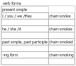 ˈchain-smoke [chain-smoke chain-smokes chain-smoked chain-smoking] BrE NAmE verb intransitive, transitive ~ (sth) to smoke cigarettes continuously, lighting the next one from the one you have just smoked Derived Word: ↑chain-smoker Verb forms: