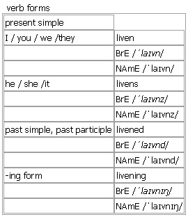 [ˈlaɪvn] NAmE [ˈlaɪvn] verb