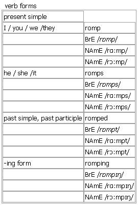 romp [romp romps romped romping] verb, noun BrE [rɒmp] NAmE [rɑːmp] NAmE [rɔːmp]