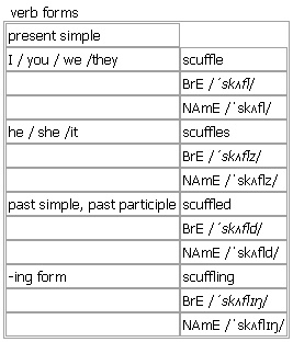 scuf·fle [scuffle scuffles scuffled scuffling] noun, verb BrE [ˈskʌfl] NAmE [ˈskʌfl] noun ~ (with sb) | ~ (between A and B) a short and not very violent fight or struggle •Scuffles broke out between police and demonstrators. •He was involved in a scuffle with a photographer. Word Origin: late 16th cent. (as a verb): probably of Scandinavian origin; compare with Swedish skuffa ‘to push’; related to ↑shove and ↑shuffle. Synonyms: fight clash • brawl • struggle • scuffle These are all words for a situation in which people try to defeat each other using physical force. fight • a situation in which two or more people try to defeat each other using physical force: ▪ He got into a fight with a man in the bar. clash • (journalism) a short fight between two groups of people: ▪ Clashes broke out between police and demonstrators. brawl • a noisy and violent fight involving a group of people, usually in a public place: ▪ a drunken brawl in a bar struggle • a fight between two people or groups of people, especially when one of them is trying to escape, or to get sth from the other: ▪ There were no signs of a struggle at the murder scene. scuffle • a short and not very violent fight or struggle: ▪ He was involved in a scuffle with a photographer. a fight/clash/brawl/struggle/scuffle over sth in a fight/brawl/struggle/scuffle a violent fight/clash/struggle to be in/get into/be involved in a fight/clash/brawl/scuffle a fight/clash/brawl/scuffle breaks out Example Bank: •He was injured in a scuffle at the demonstration. •He was involved in a scuffle with photographers. •a scuffle between rival gangs •Scuffles broke out between police and demonstrators. verb 1. intransitive ~ (with sb) (of two or more people)to fight or struggle with each other for a short time, in a way that is not very serious •She scuffled with photographers as she left her hotel. •They scuffled for a few minutes, but did not exchange blows. 2. intransitive + adv./prep. to move quickly making a quiet rubbing noise •Some animal was scuffling in the bushes. Verb forms: Word Origin: late 16th cent. (as a verb): probably of Scandinavian origin; compare with Swedish skuffa ‘to push’; related to ↑shove and ↑shuffle.
