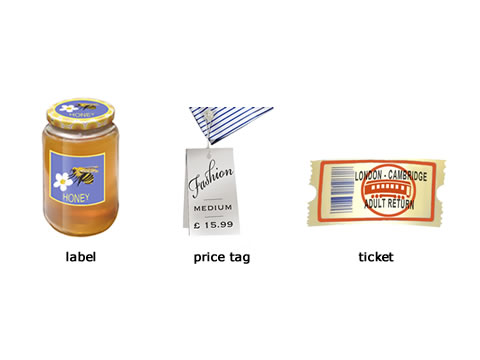 3. a label that is attached to sth in a shop/store giving details of its price, size, etc.